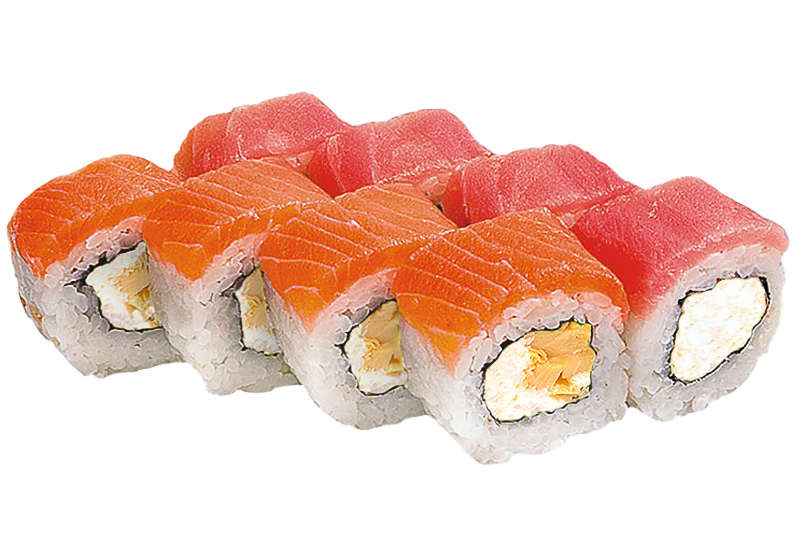Ролл с лососем и креветкой + Ролл с лососем и крабом