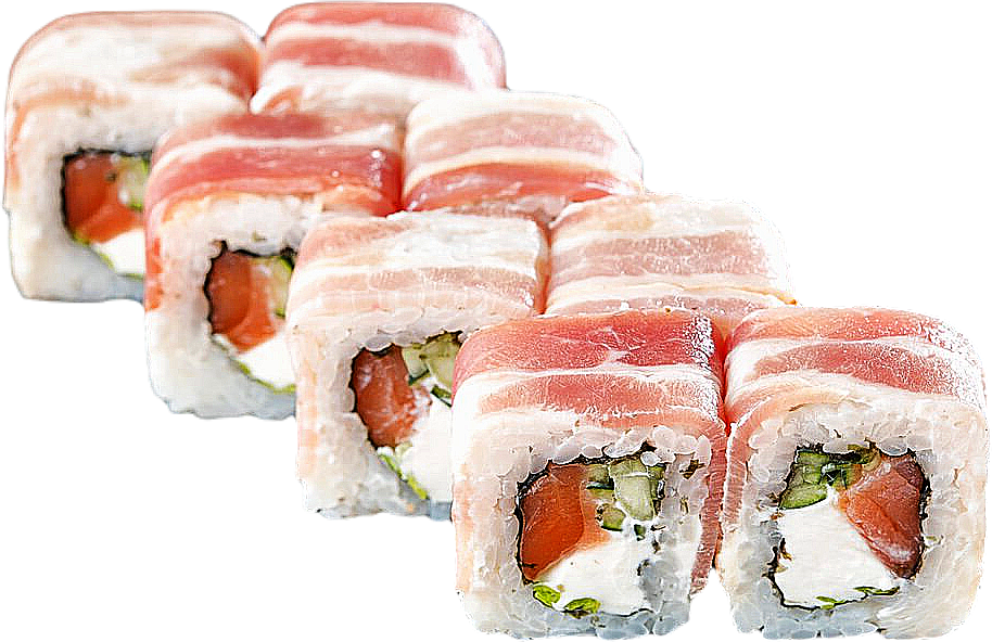 РИС, НОРИ, СЫР СЛИВОЧНЫЙ, ПОМИДОР, ОГУРЕЦ, БЕКОН ▫8 шт. 230 г