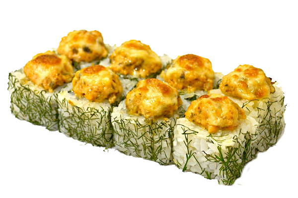 РИС, НОРИ, ОГУРЕЦ, СЫР СЛИВОЧНЫЙ, ЛОСОСЬ, СПАЙСИ СОУС, СЫР ГАУДА, УКРОП ▫
