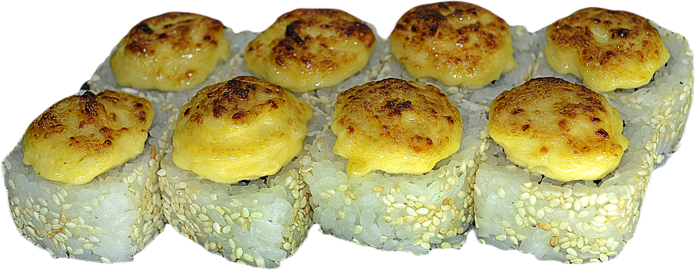 РИС, НОРИ, ОГУРЕЦ, СЫР СЛИВОЧНЫЙ, УГОРЬ, СПАЙСИ СОУС, СЫР ГАУДА, УНАГИ СОУС, КУНЖУТ ▫8 шт. 250 г